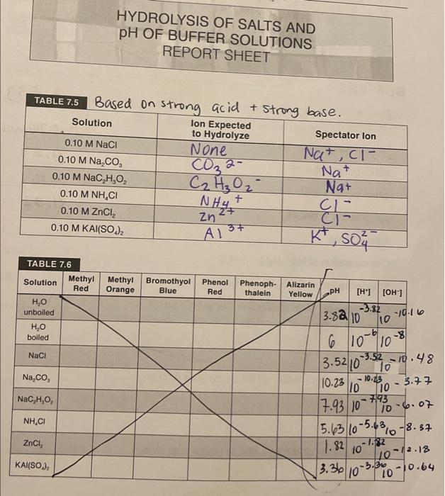 Solved REPORT SHEET Hydrolysis of Salts and pH of Buffer Hydrolysis Of Salts Lab Report Which of the following reactions best represents the hydrolysis reaction of a salt that gives an acidic solution when dissolved in water? To gain familiarization with the concept of hydrolysis. Salt hydrolysis is a reaction in which one of the ions from a salt reacts with water, forming either an acidic or basic solution. The approximate ph of these. It. Hydrolysis Of Salts Lab Report.