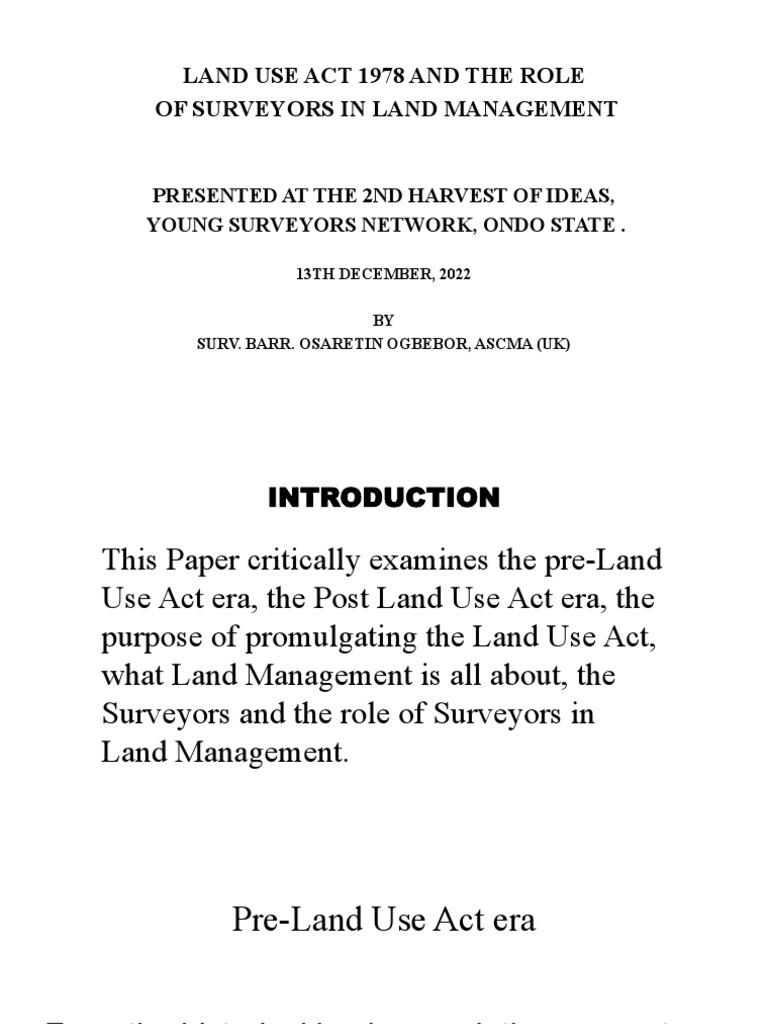 Land Use Act 1978 and The Role of Surveyors in Land Magt PDF