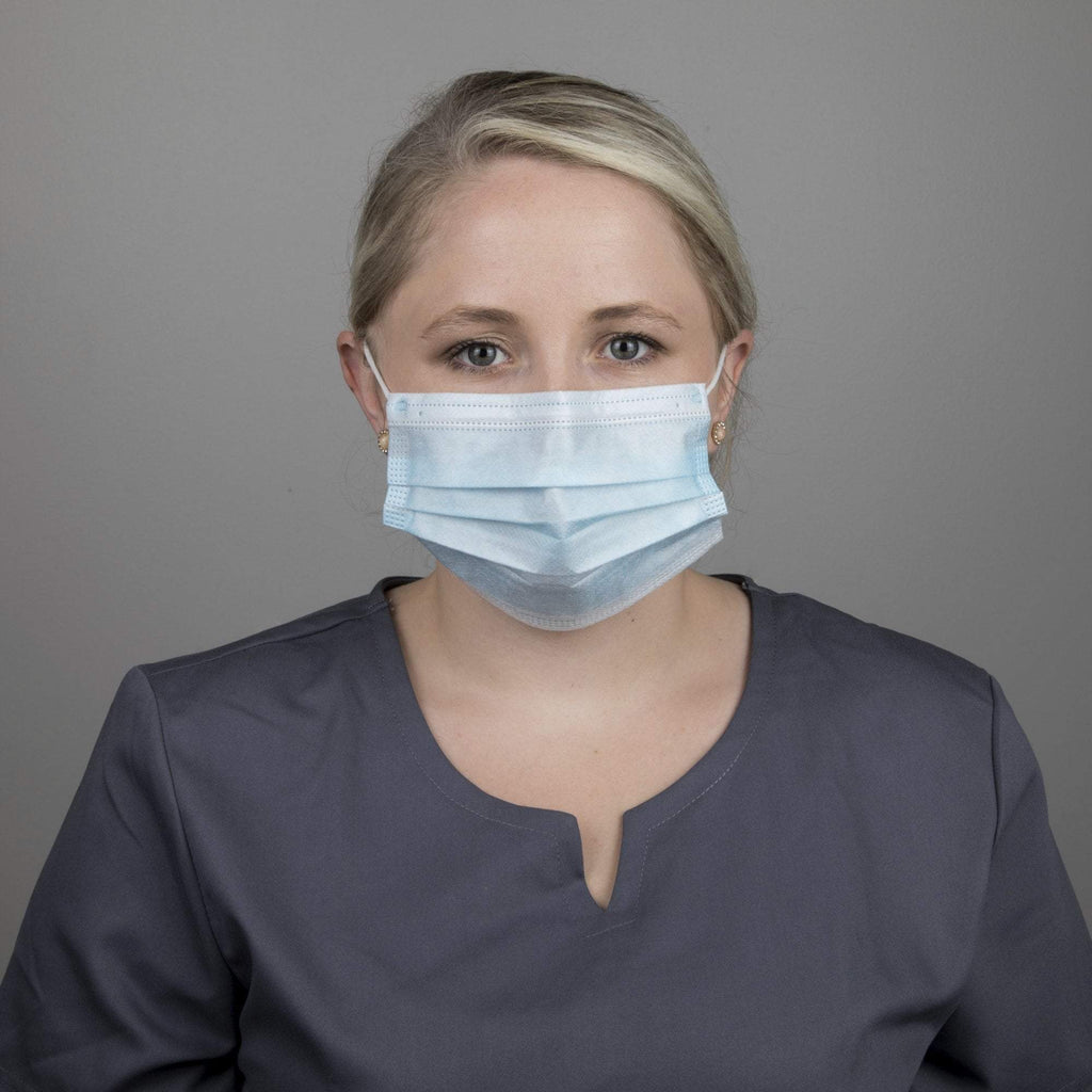 3Ply Disposable Face Mask, Blue, 50 ct. Disposable Face Mask Blue 100k+ visitors in the past month Round elastic ear loop is easy to put on, no strings to tie. 100k+ visitors in the past month Each mask features an enclosed aluminum nose piece and elastic earloops. Disposable Face Mask Blue.