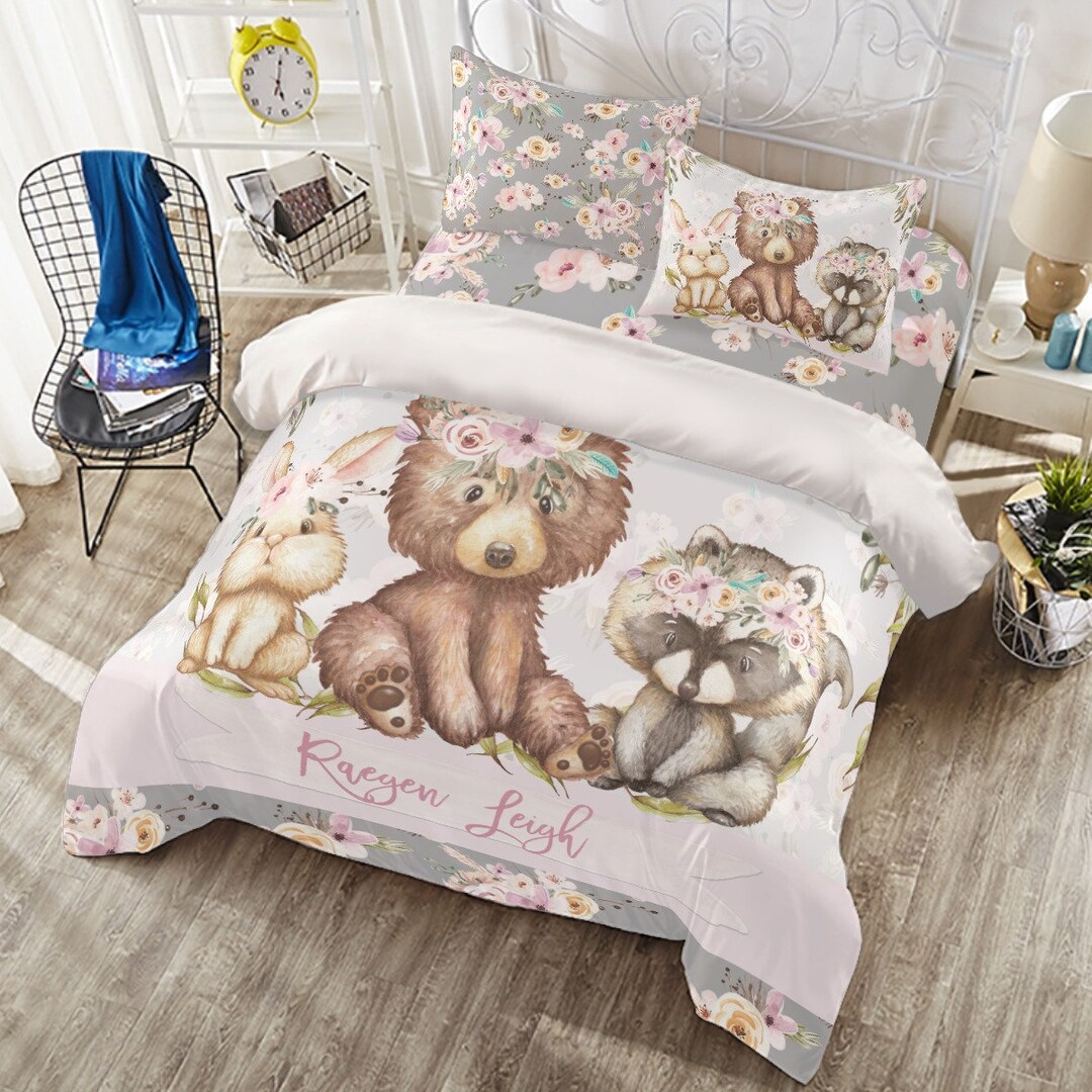 Girl Woodland Comforter Personalized Duvet Covers Girl Bear Woodland
