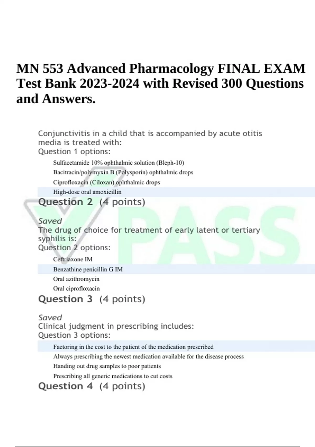 MN 553 FINAL EXAM QUESTIONS AND ANSWERS MN 553 Advanced Pharmacology Stuvia US Mn 553 Final Exam studying mn553 advanced pharmacology and pharmacotherapeutics at purdue university global? mn553 final flashcards | quizlet. study with quizlet and memorize flashcards containing terms like prescriptive authority, prescribing, first pass effect and more. mn 553 pharmacology final exam review. mn 553 advanced pharmacology final exam test bank with revised 300 questions and answers. view mn553. Mn 553 Final Exam.