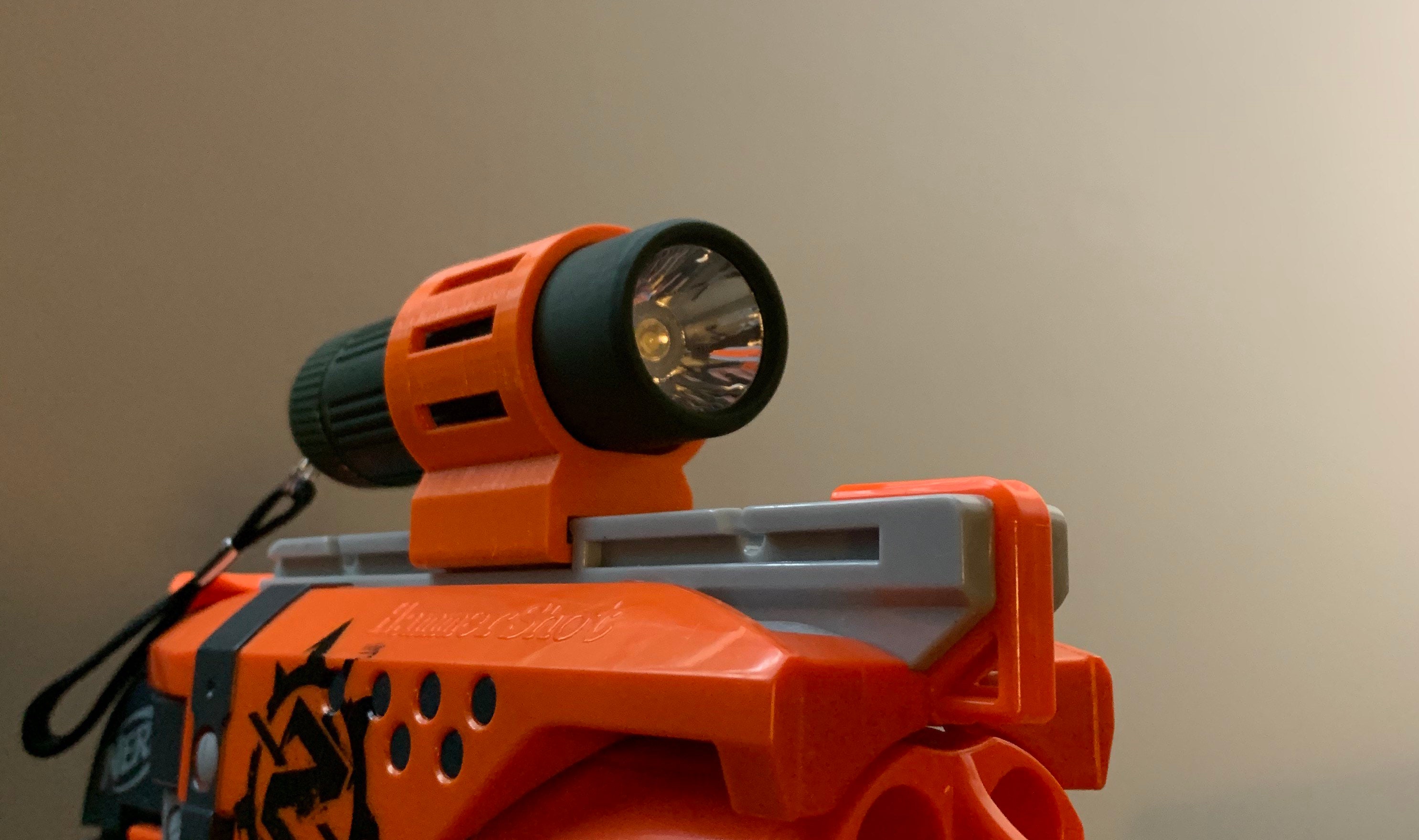 Nerf Hammershot Flashlight Holder by Matthew Temkin Download free STL model Nerf Flashlight Holder Every day new 3d models from all over the world. Click to find the best. This prints well from a makerbot mini, and fits snug, with confidence… | download free 3d printable stl models In the picture, you see a thrunite t10. Download files and build them with your 3d printer, laser cutter, or cnc. check out our nerf. Nerf Flashlight Holder.