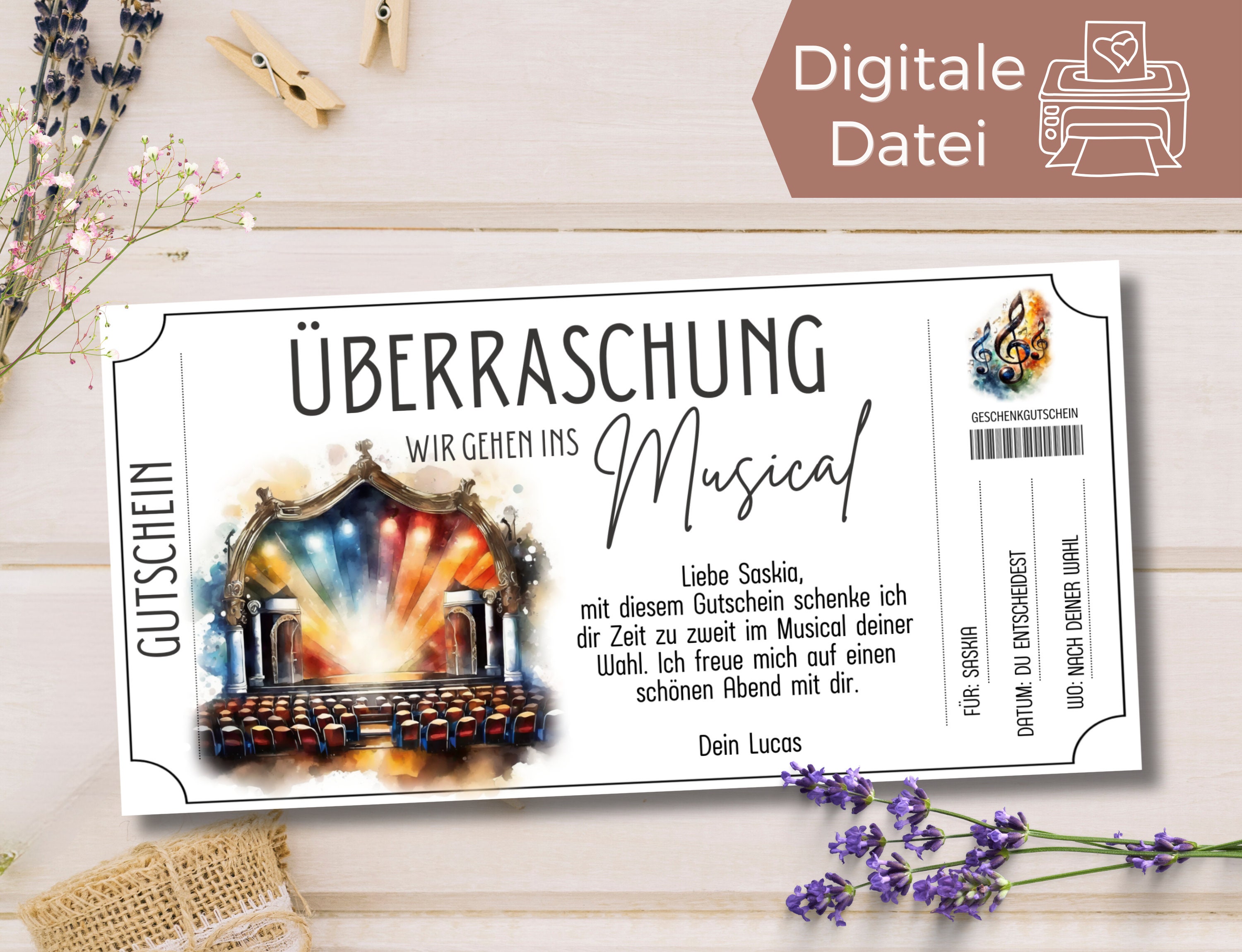 Gutschein Musical Besuch Vorlage Gutscheinvorlage Oper zum Ausdrucken