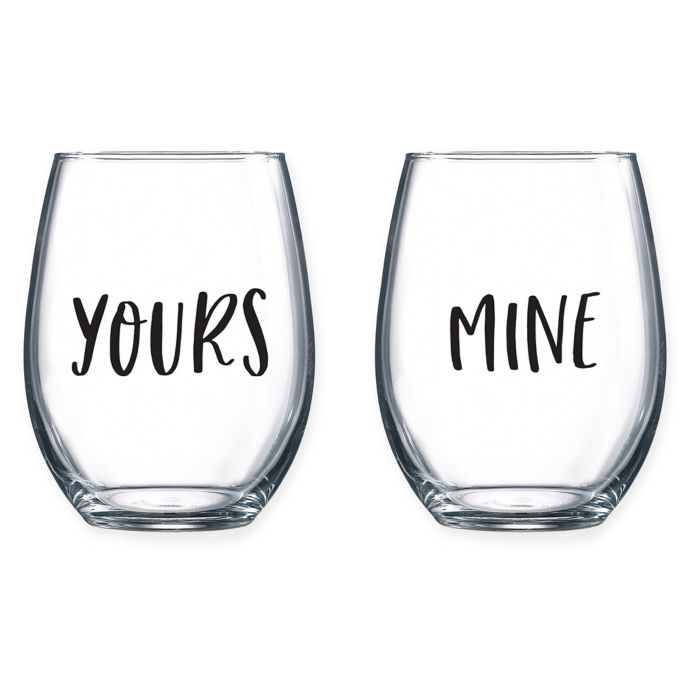 Novelty Word Yours/Mine Stemless Wine Glasses (Set of 2) Bed Bath and