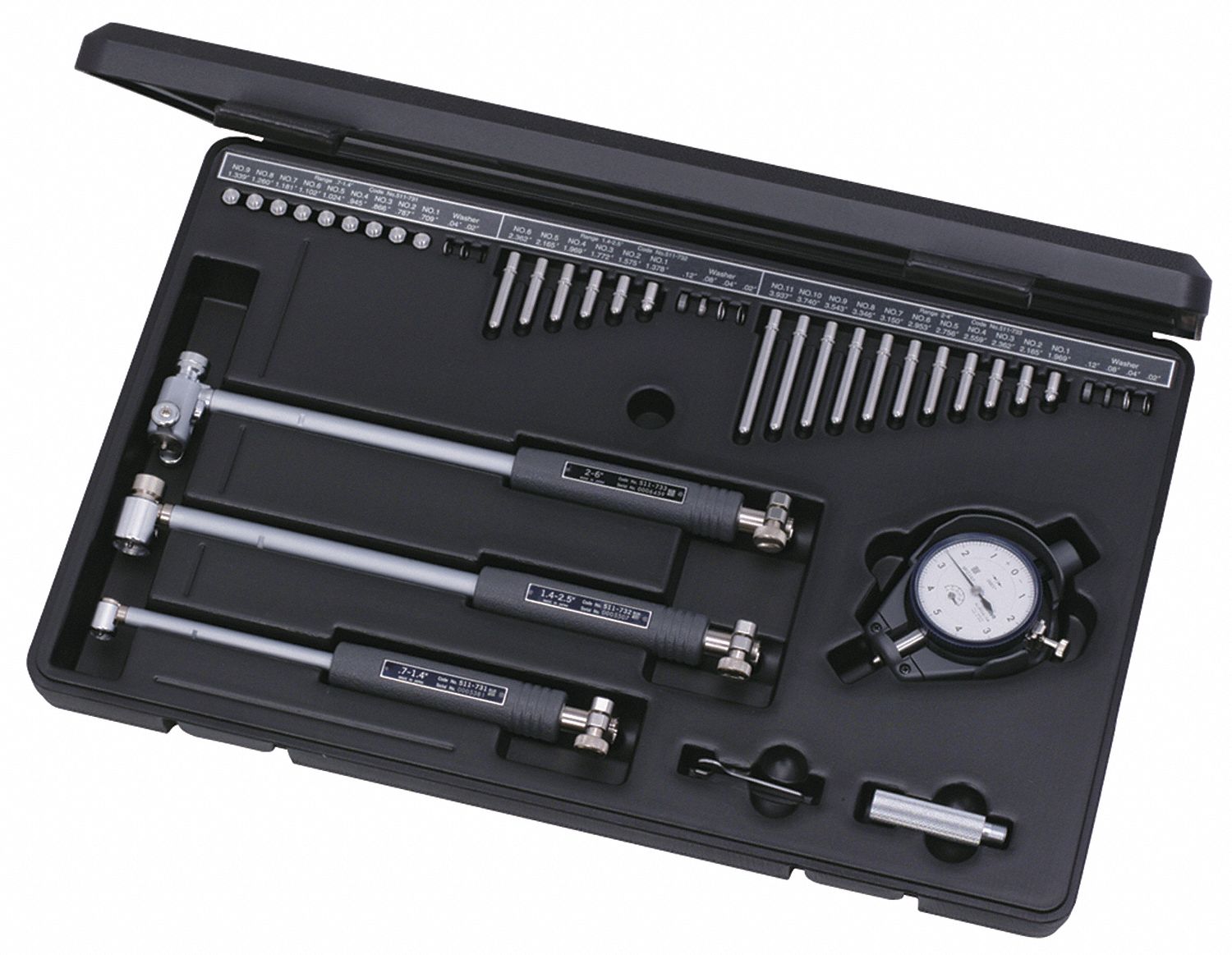 Carbide ball contact point for durability. Supplied in fitted wooden case. Interchangeable anvils and necessary accessories to perform close tolerance i.d. Bore gage depth extension rods can be attached to the 511 series bore gages for measuring deep holes. Measurement can be taken closer to the bottom of a blind bore. Bore gages measure holes, or bores, in a workpiece. They can measure the interior diameter of a hole at any depth, while internal micrometers can. Replaceable carbide gage points which can be rotated for long life. Measure deep holes by attaching an optional extension rod. Includes 6 interchangeable heads and an extension rod, making it ideal for diverse cylinder sizes and.
