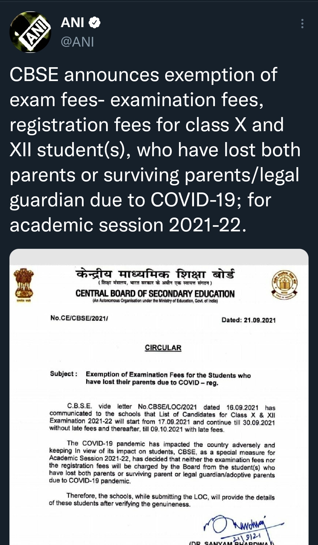 CBSE announces fee exemptions for those children who have lost both of
