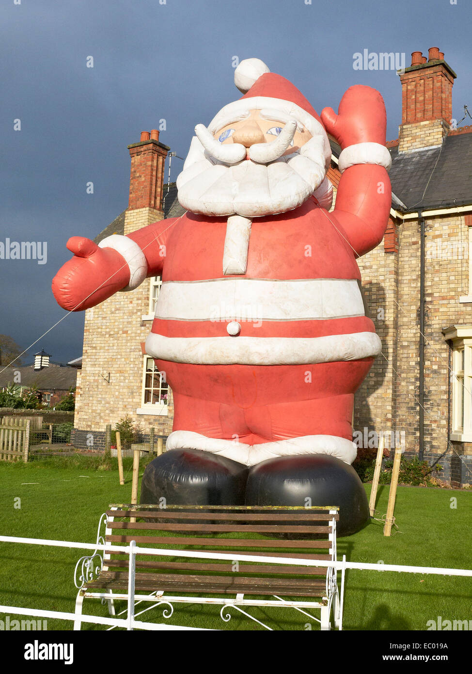 Giant inflatable Santa is displayed at Wheelock Hall Farm it attract