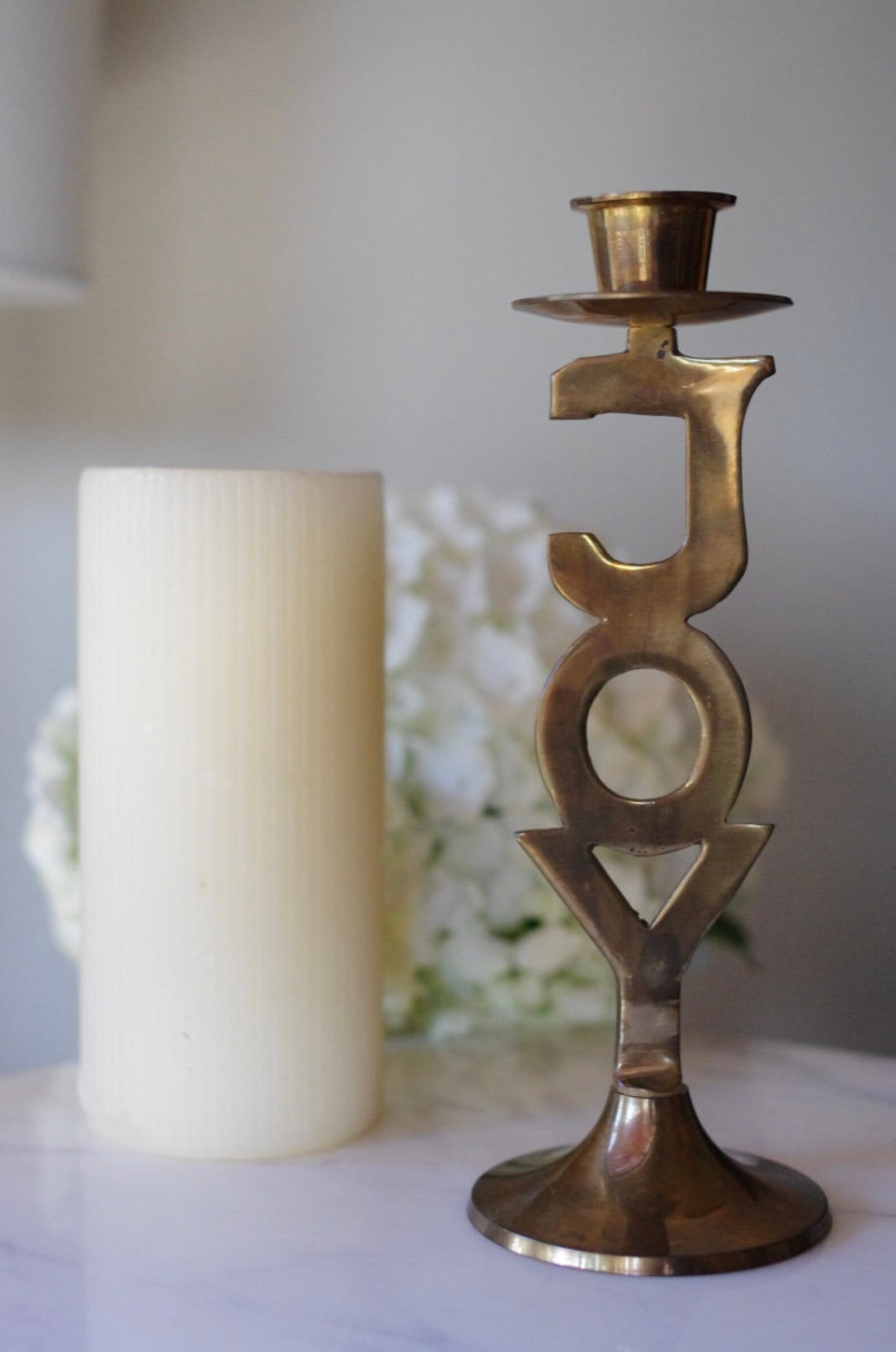 Vintage Brass Joy Candlestick Holder Joy Candle Holder by Etsy