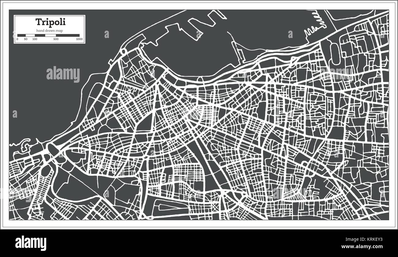 Tripoli Libya Map in Retro Style. Vector Illustration. Outline Map