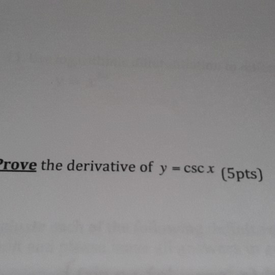 Prove the derivative of y = csc x