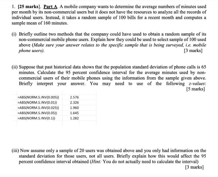Solved 1. [25 marks). Part A. A mobile company wants to