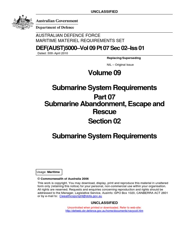 Submarine System Requirements Submarine Abandonment, Escape and Rescue