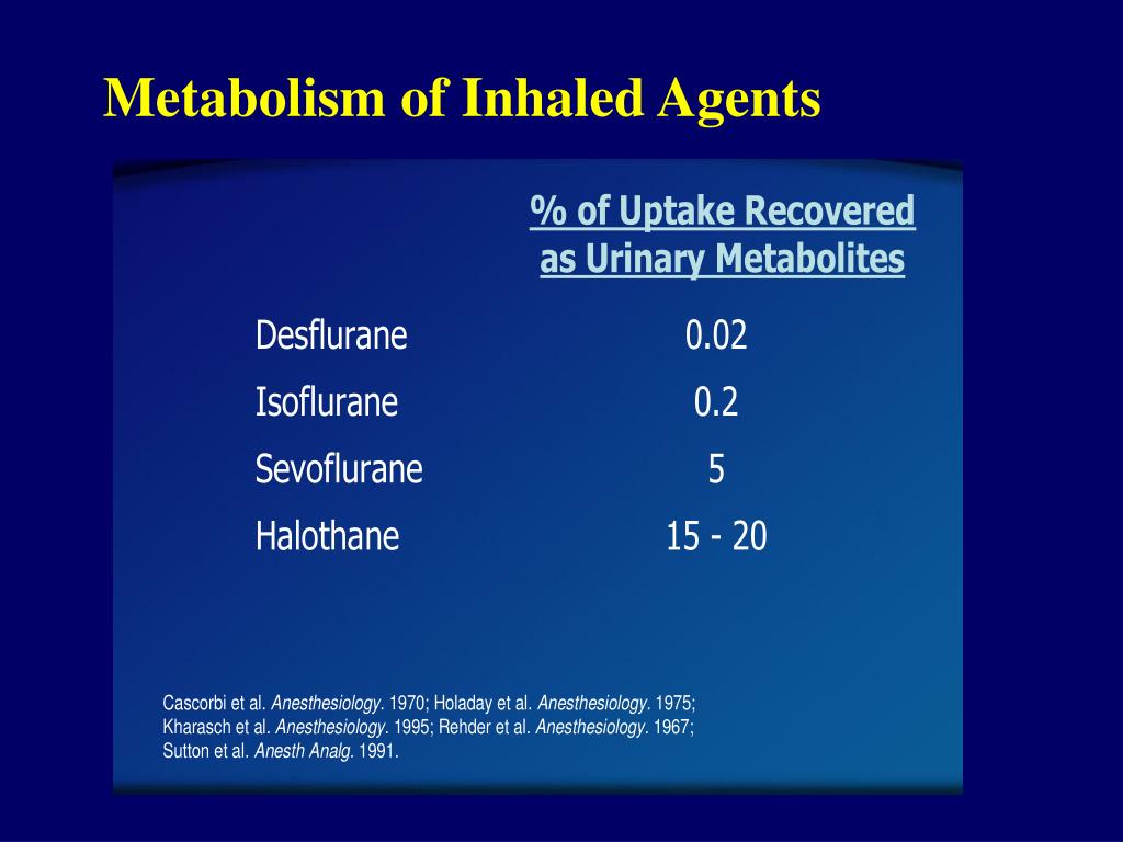 PPT Inhalation Anesthesia PowerPoint Presentation ID188772 Anesthetic Metabolism Pharmacogenetics is the study of the molecular mechanisms that underlie individual differences in drug metabolism, efficacy, and side effects. Metabolic disorders are a group of inherited inborn errors of metabolism that present infrequently. Others are secondary to anesthetically induced changes in, for example,. Metabolism and clearance ester and amide local anaesthetic agents differ concerning their metabolism and allergic potential. Significant. Anesthetic Metabolism.