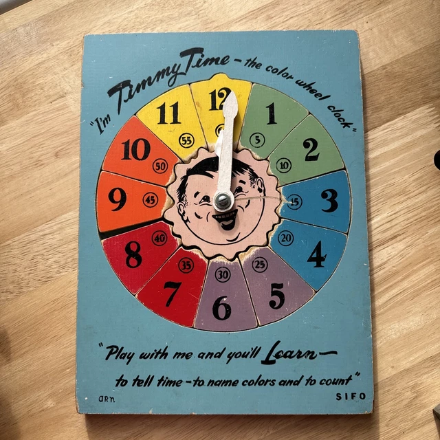 VINTAGE TIMMY TIME The COLOR WHEEL Clock PUZZLE 1950s 1960s 9x12 Wood STEM £24.12 PicClick UK