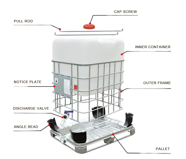 1000L IBC Contenedor De Agua Tanque Emergencia Barril De Agua con Metal Cage Water Tank Great for storing liquids of all kinds, chemical resistant. The rebottled ibc tote has a reconditioned steel cage and pallet that is fda approved. This ibc tote has a reconditioned steel cage and a brand new bottle installed by imacc corporation. Intermediate bulk container tank (ibc) is caged and mounted on a pallet. The tote is equipped with a 2”. Metal Cage Water Tank.