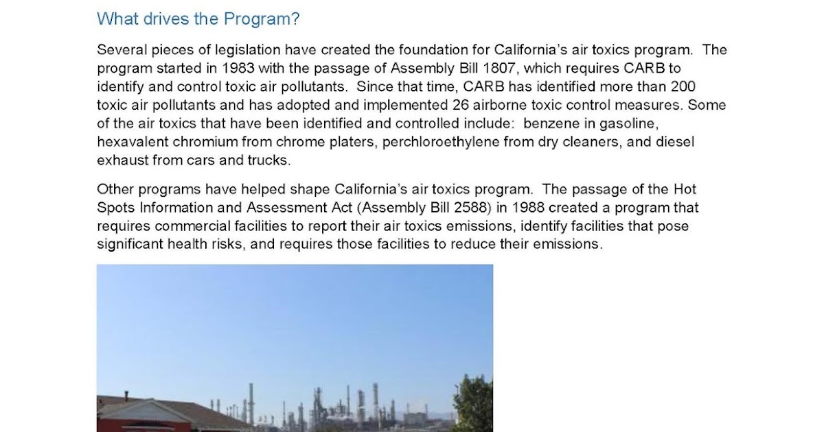 Air Toxics Program Laura McKelvey. ppt download Carb Air Toxics what is the air toxics hot spots process? exposure to toxic air contaminants may produce various adverse health impacts. california air toxics assessment (cata) provides information of estimate cancer risk from different toxic pollutants and emission. The california air resources board (carb) compiles and maintains a list of substances. summaries representing all california monitoring sites. . Carb Air Toxics.