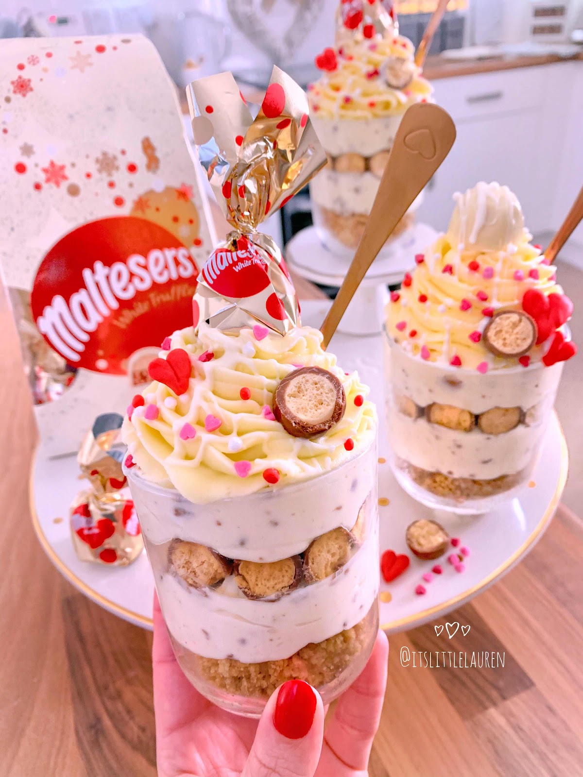 Individual white Malteser truffle cheesecake jars itslittlelauren