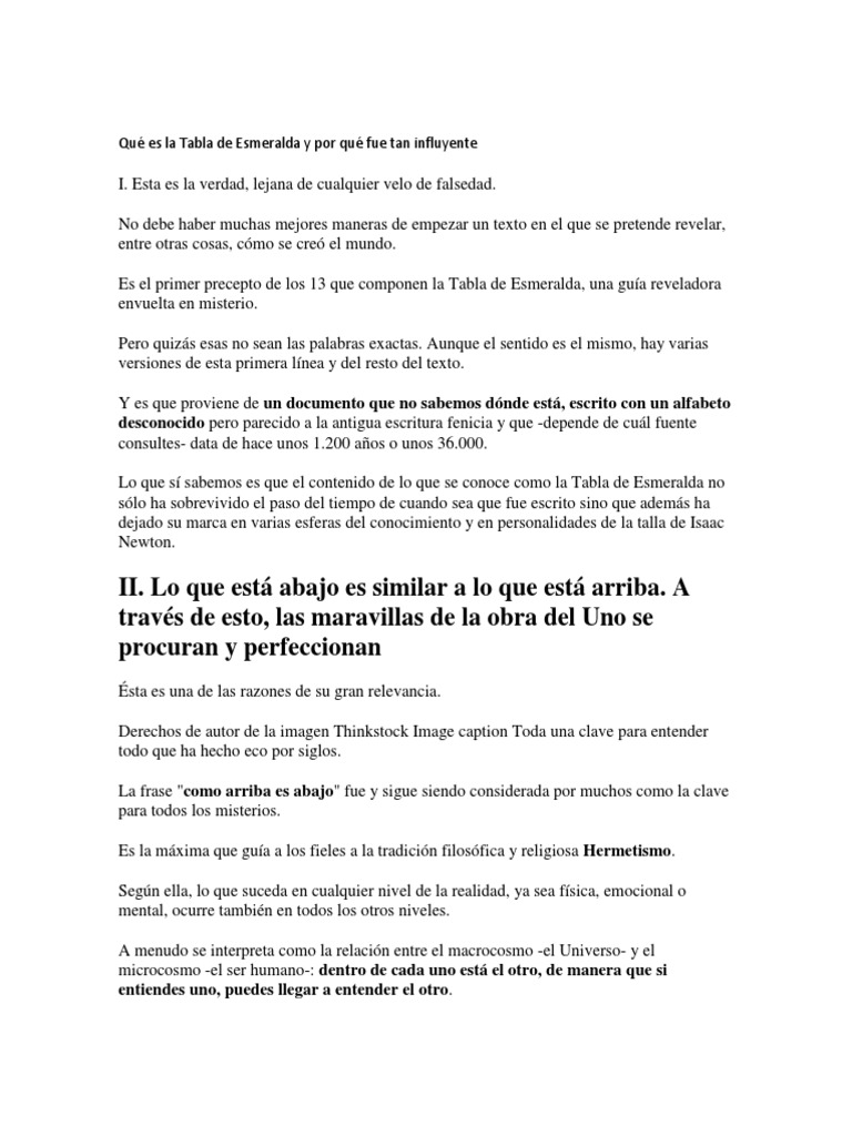 Qué es la Tabla de Esmeralda y por qué fue tan influyente BBC Mundo Tabla Esmeralda Pdf las tablas de la esmeralda de thoth el atlante. la tabla de esmeralda es un texto clásico atribui do a hermes trismegisto del que, sin excepción, se reclaman discípulos todos. descarga gratis el libro tabla de esmeralda de hermes trismegisto, un texto antiguo que contiene los secretos del universo y la. Free download, borrow, and streaming :. Tabla Esmeralda Pdf.