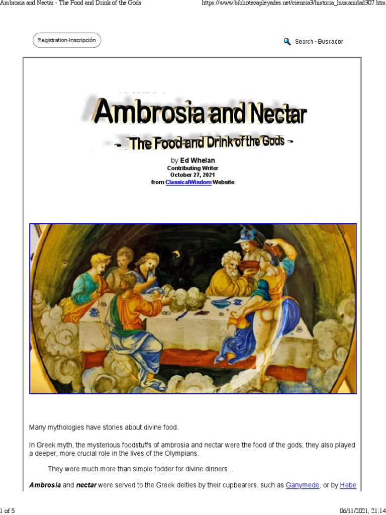 Ambrosia And Nectar Ambrosia and nectar, the revered food and drink of the gods, were believed to bestow immortality when consumed. Ambrosia and nectar are often described as being sweeter than honey and could be used as an anointing fluid or restorative for the gods. Learn about the food and drink of the gods, their sources, effects, and uses in greek myths. In. Ambrosia And Nectar.