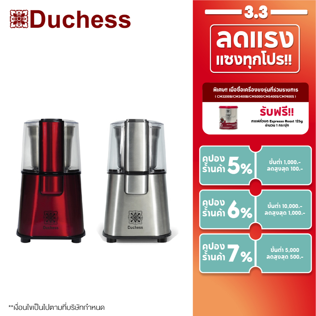 Duchess เครื่องบดเมล็ดกาแฟ รุ่น CG9100 มีให้เลือก 2 สี (สีแดงสีเงิน) บด