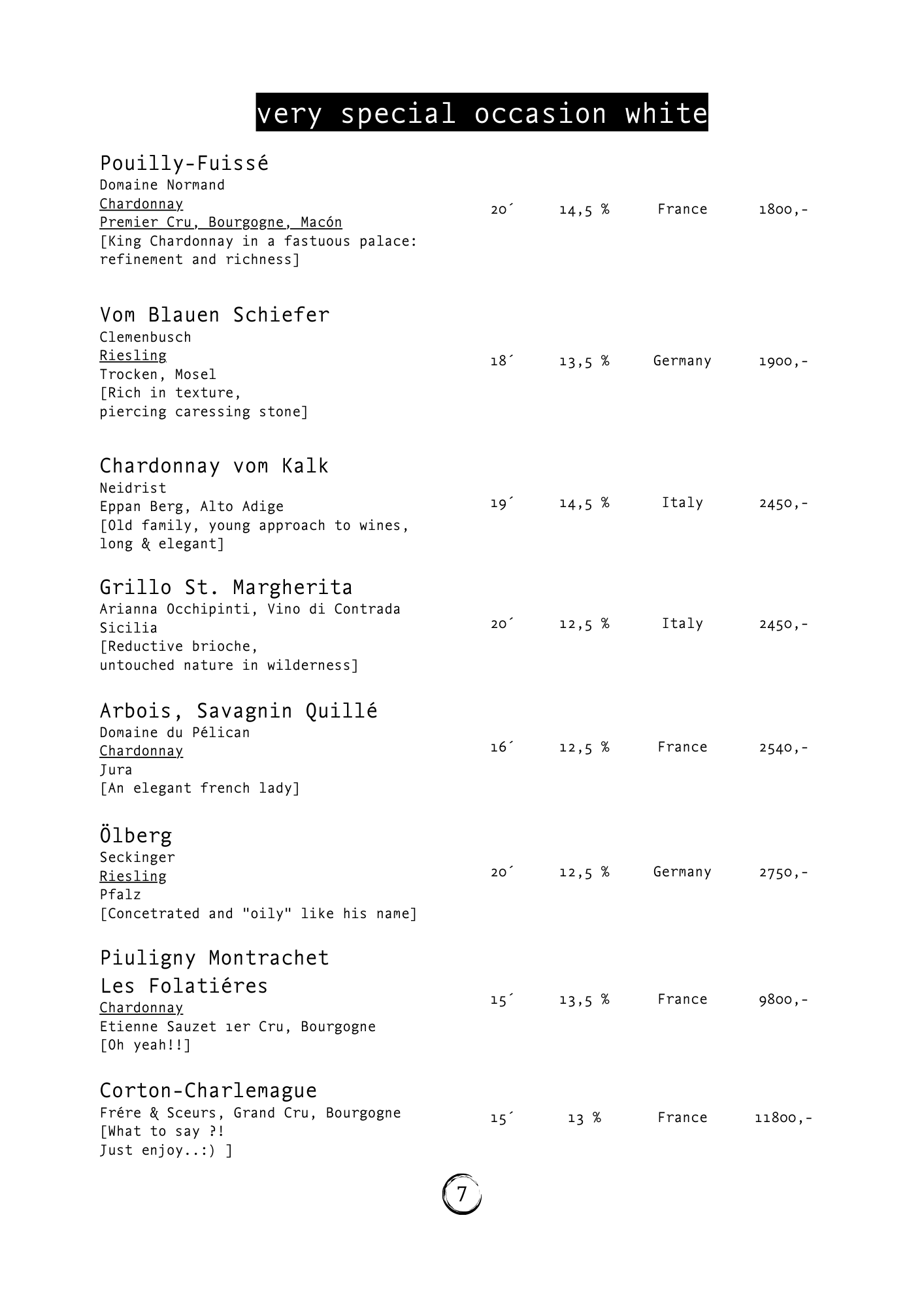 Wine list — SANSHO Wine Spirits Definition They are also known as hard liquor, distilled spirits, or. Learn how to spot a spirit/liquor bottle and what differentiates one spirit from. learn the basics of distilled spirits, the seven core types of alcoholic beverages, and how they differ in taste and production. Find out how to order and enjoy different types of spirits,. learn the historical. Wine Spirits Definition.
