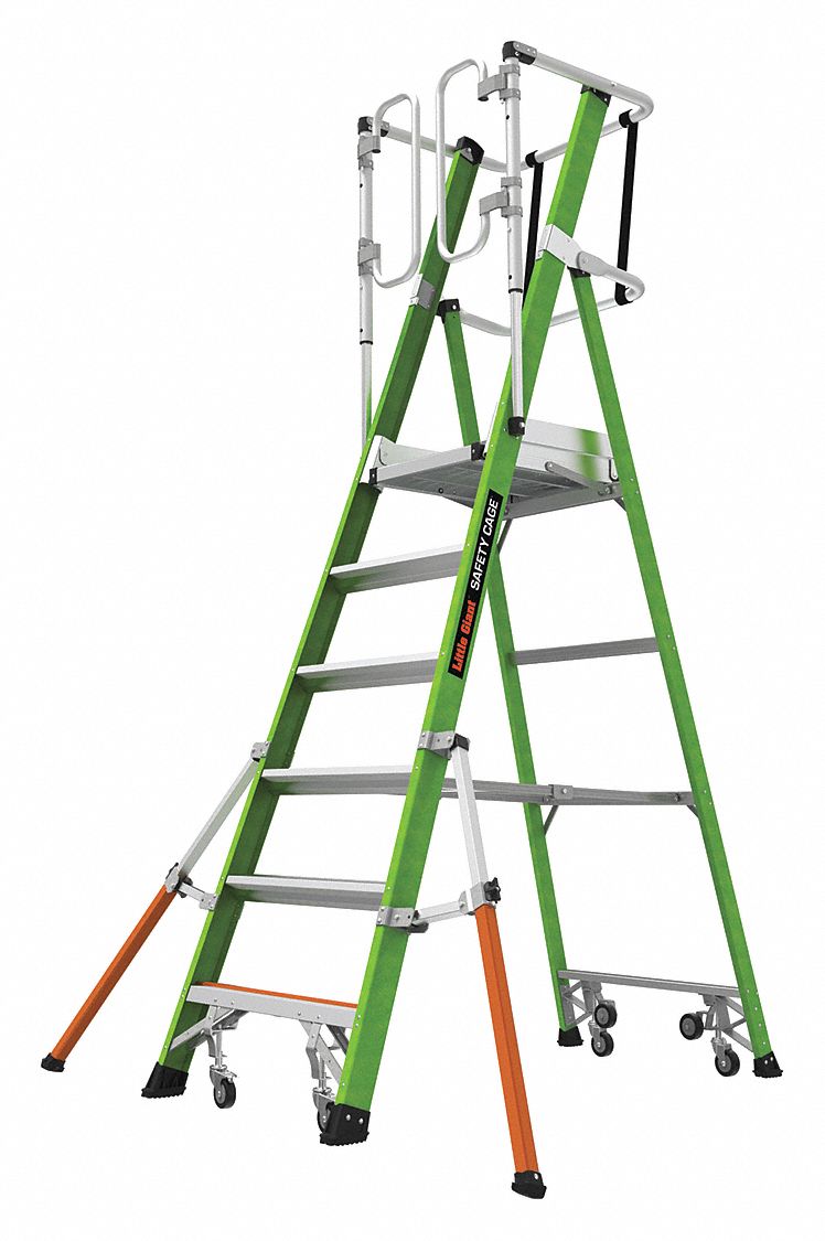 LITTLE GIANT Fiberglass Safety Cage Platform Ladder, 6 to 10 ft Ladder Platform Ladder With Cage Available with or without the safety cage addition, our vertical fixed ladders can hold up 300 lbs. In weight and are compliant with fixed ladder osha standards. You can use cage ladders or platform ladders to access surfaces exceeding 20 to 30 feet. The adjustable safety cage meets or exceeds all osha and ansi standards and is rated iaa to. Platform Ladder With Cage.
