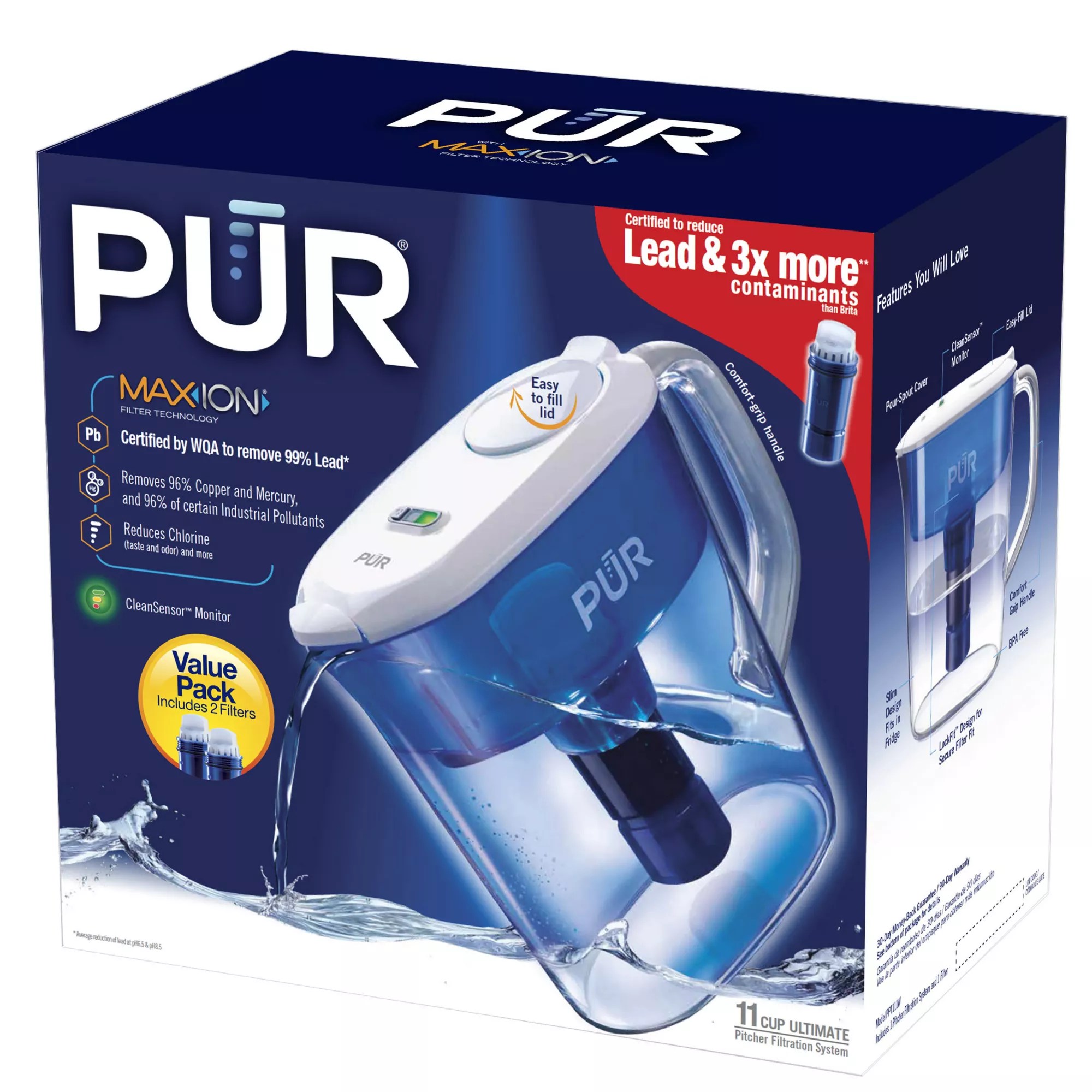 PUR® CR1100CV3 11 Cup Clear & Blue Ultimate Filtration System with Pur 11 Cup Ultimate Water Pitcher With Two Bonus Replacement Filters Pur provides lead filtration among its pitchers and filters certified to reduce lead, bringing you a pitcher that removes 99% of lead and reduces. Certified to reduce 15 contaminants, 2x more than. This is certified to reduce 20+. Shop pur 11 cup water filtration pitcher with two replacement filters from bjs.com. Cups per filter, and lasts up to two months. Pur 11 Cup Ultimate Water Pitcher With Two Bonus Replacement Filters.