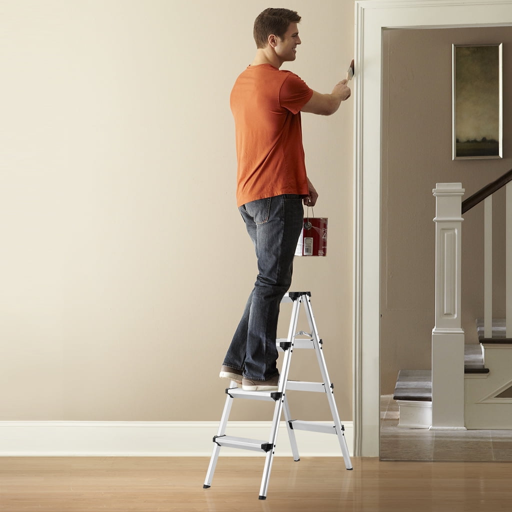 Aluminum Folding Extension Ladder 3.2 ft High Double Sided Step Ladder