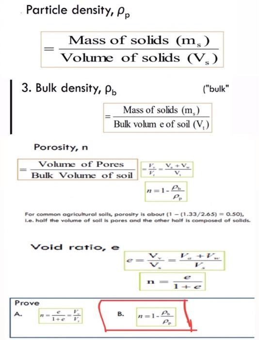 Solved Particle density, ρp = Volume of solids (Vs) Mass of