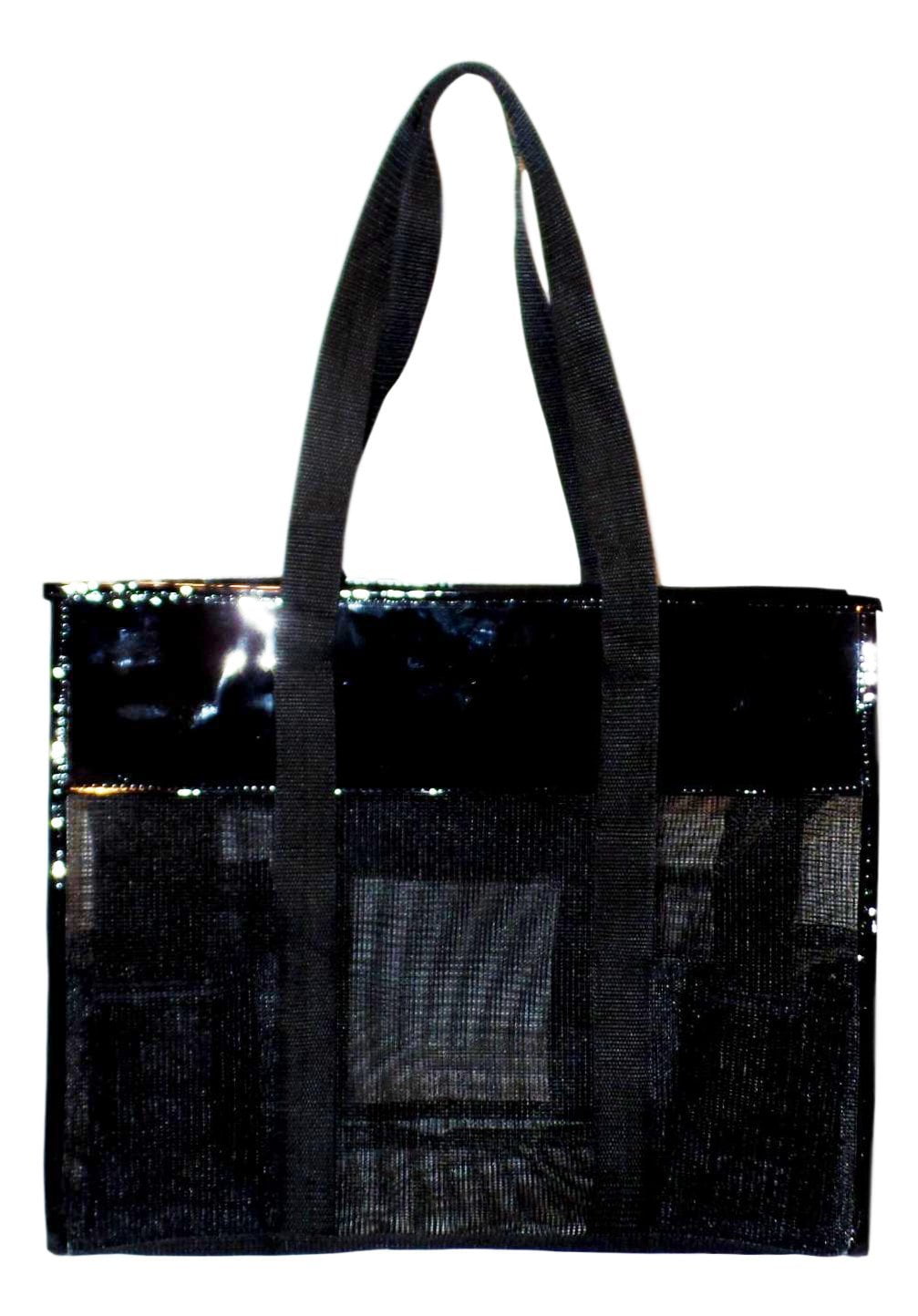 Mesh Shopper Utility Beach Bag Zipper Organizing Tote bag Black