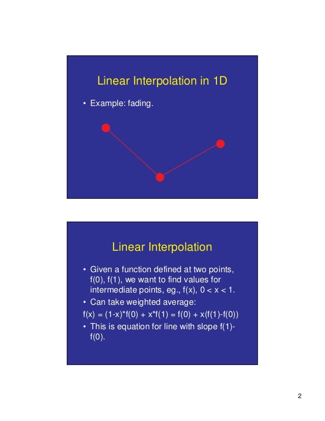 Linear Interpolation Equation learn how to use the linear interpolation formula to estimate the value of a function between any two known values. learn how to use linear interpolation formula to estimate values between two known data points on a linear. Linear interpolation estimates a point on the line joining the nearest points to the left. Find the coefficients, constraints and.. Linear Interpolation Equation.