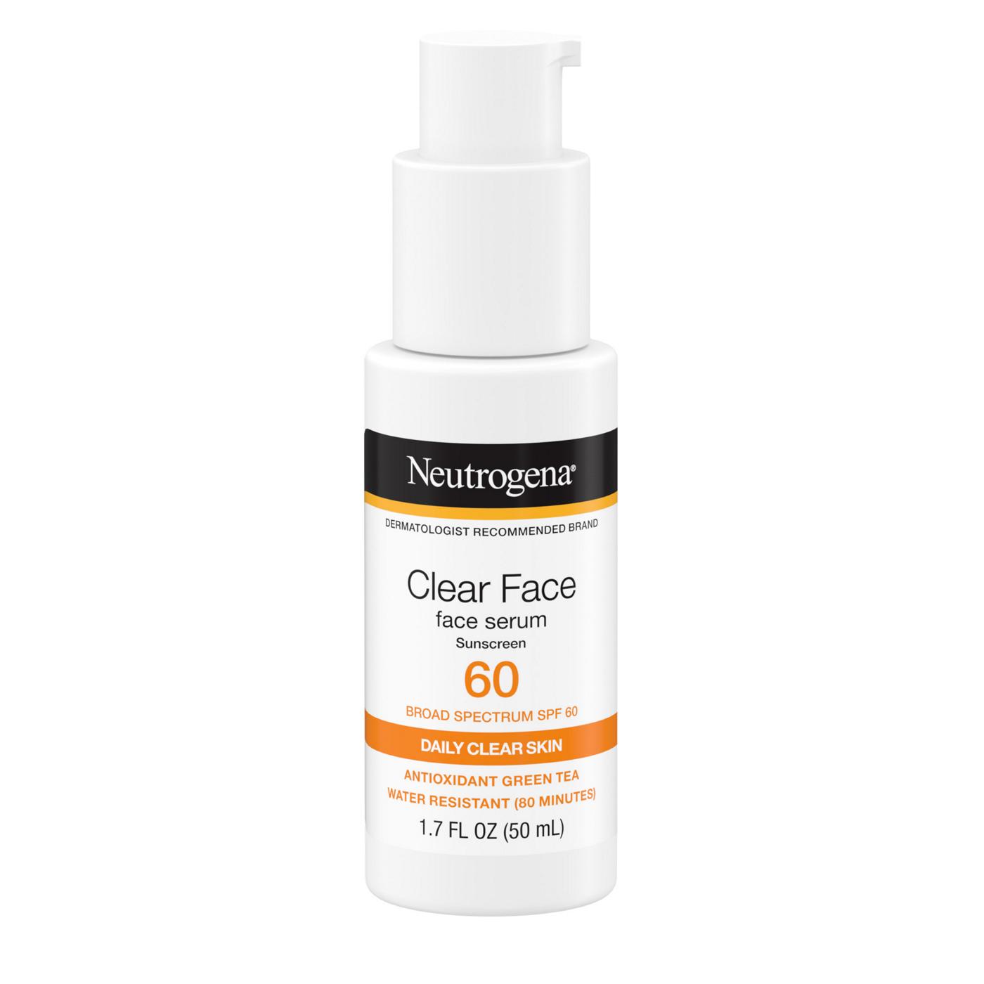 FSA Eligible Neutrogena Clear Face Serum Sunscreen, SPF 60+, 1.7 oz Face Serum With Sunscreen Protect skin from the sun for more radiant skin with neutrogena invisible daily defense face sunscreen + hydrating serum with spf 60. This spf visibly corrects signs of aging. Spf serums are lightweight sunscreens that have beneficial skin care ingredients like hyaluronic acid and niacinamide, and have a fluid, watery consistency. The neutrogena invisible daily defense face serum spf 60+. Face Serum With Sunscreen.