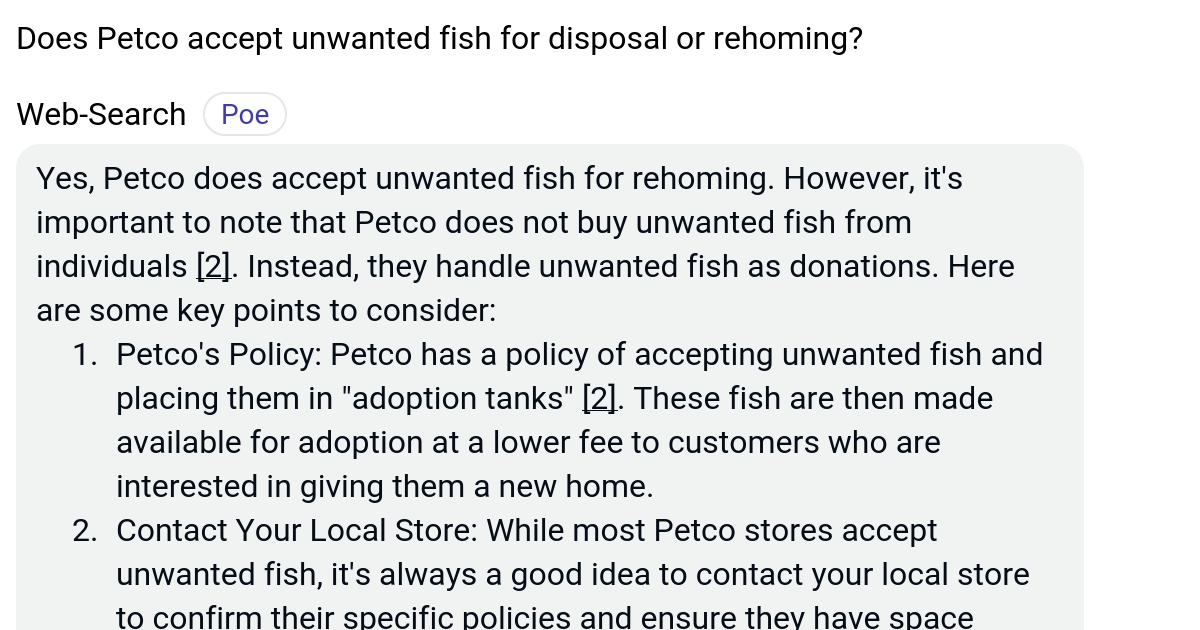 Does Petco accept unwanted fish for disposal or rehoming? Poe