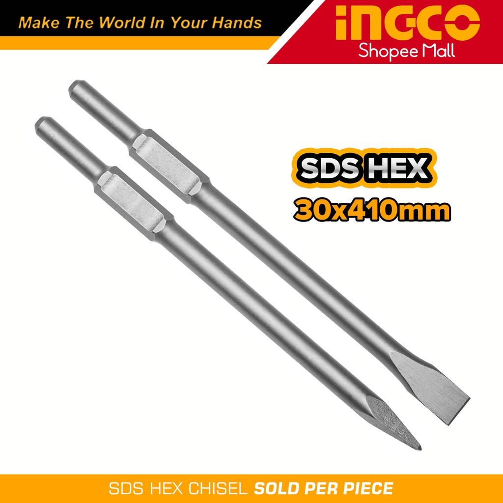 Ingco SDS HEX Chisel 30x410mm Pointed DBC0314101 Flat DBC0324102 Hex Demolition Bits High impact energy coupled with. Chipping performance ensures minimum power loss even when bull. Accepts same shank demolition bits as spline shank rotary hammers. Compact and lightweight for maximum control. Available in 230v and 110v. Compact and lightweight for maximum control. Drills and screw bits set; Hex Demolition Bits.