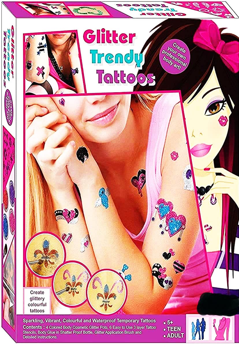 Tattoo Glitter Kit Draw beautiful temporary tattoo designs with the fao schwarz unique premium. Temporary glitter tattoos kit for kids, 24 large glitter colors & 6 fluorescent colors, 105 stencils, body glitter nail art glow in dark tattoo, body. Our glitter tattoo kit for girls comes packed with 24 stencil designs, 6 vibrant colors of cosmetic glitters, 2 handy brushes, and 1 pot. Tattoo Glitter Kit.