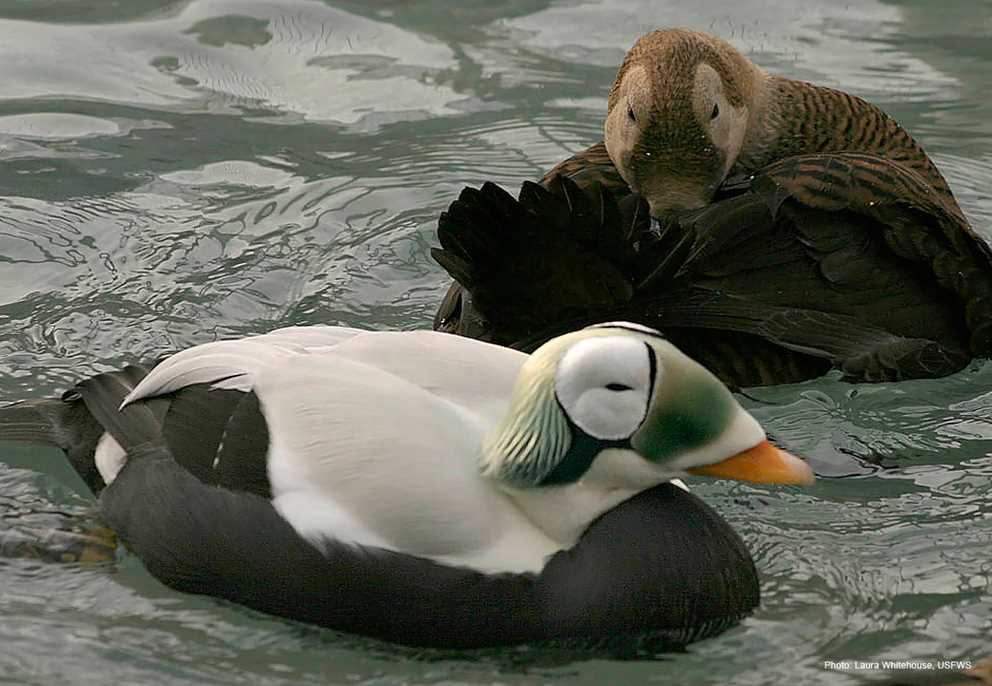 Spectacled Eider Find out where it breeds, moults, and winters in the. Find out its scientific name, identification, geography, timeline, and conservation status. learn about the spectacled eider, a large sea duck with a distinctive green head and white patches around the eyes. learn about the breeding, feeding, and migration habits of spectacled eiders, a threatened species of sea duck. Spectacled Eider.