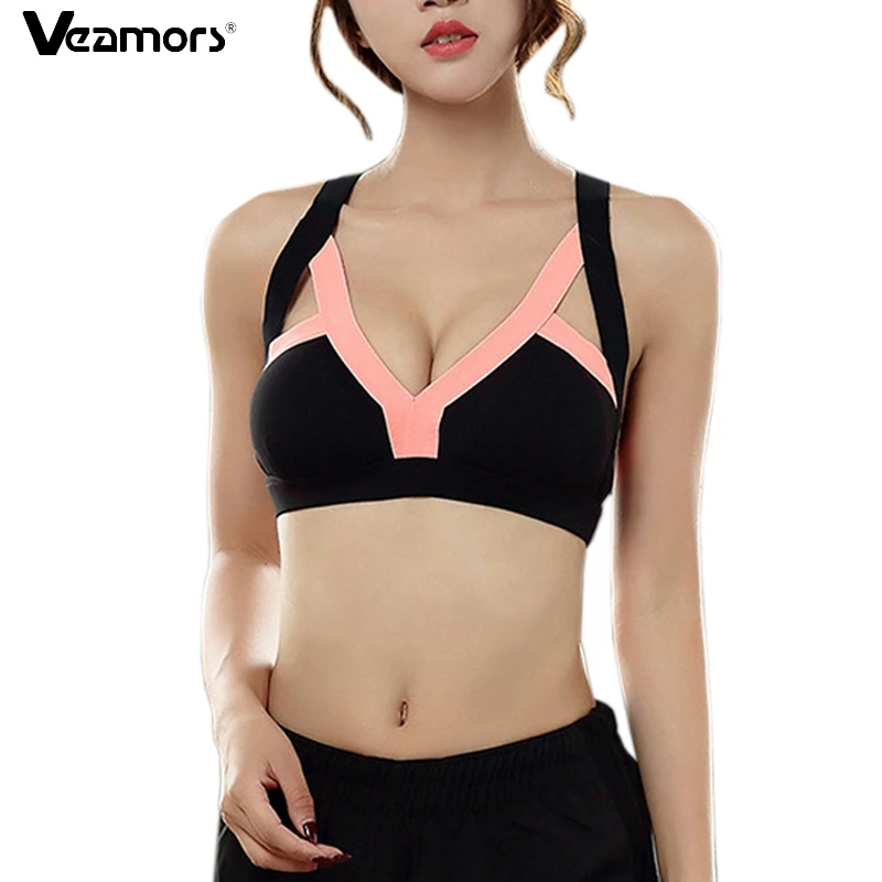 VEAMORS Women Sexy Cross Strap Backless Sport Bra Push Up Shockproof