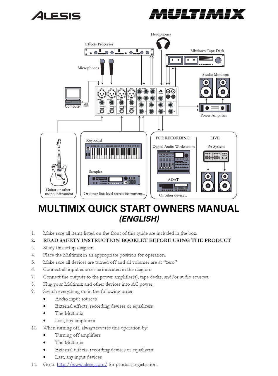 ALESIS MULTIMIX QUICK START OWNER'S MANUAL Pdf Download ManualsLib