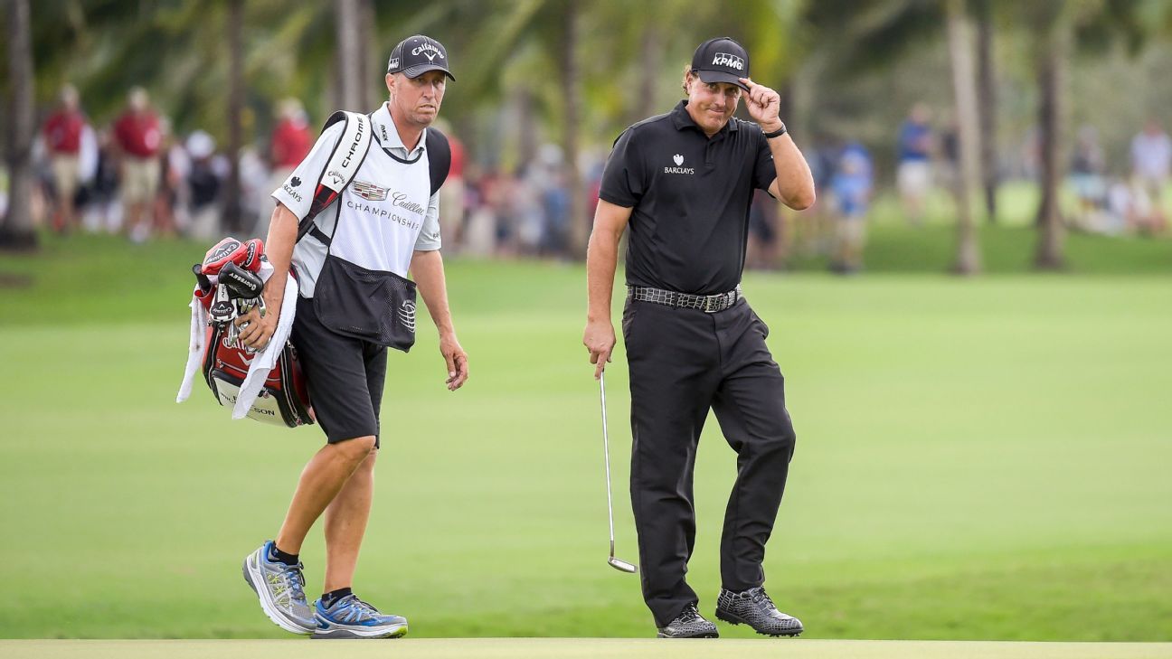 With two new knees, caddie Jim "Bones" Mackay ready to carry Phil