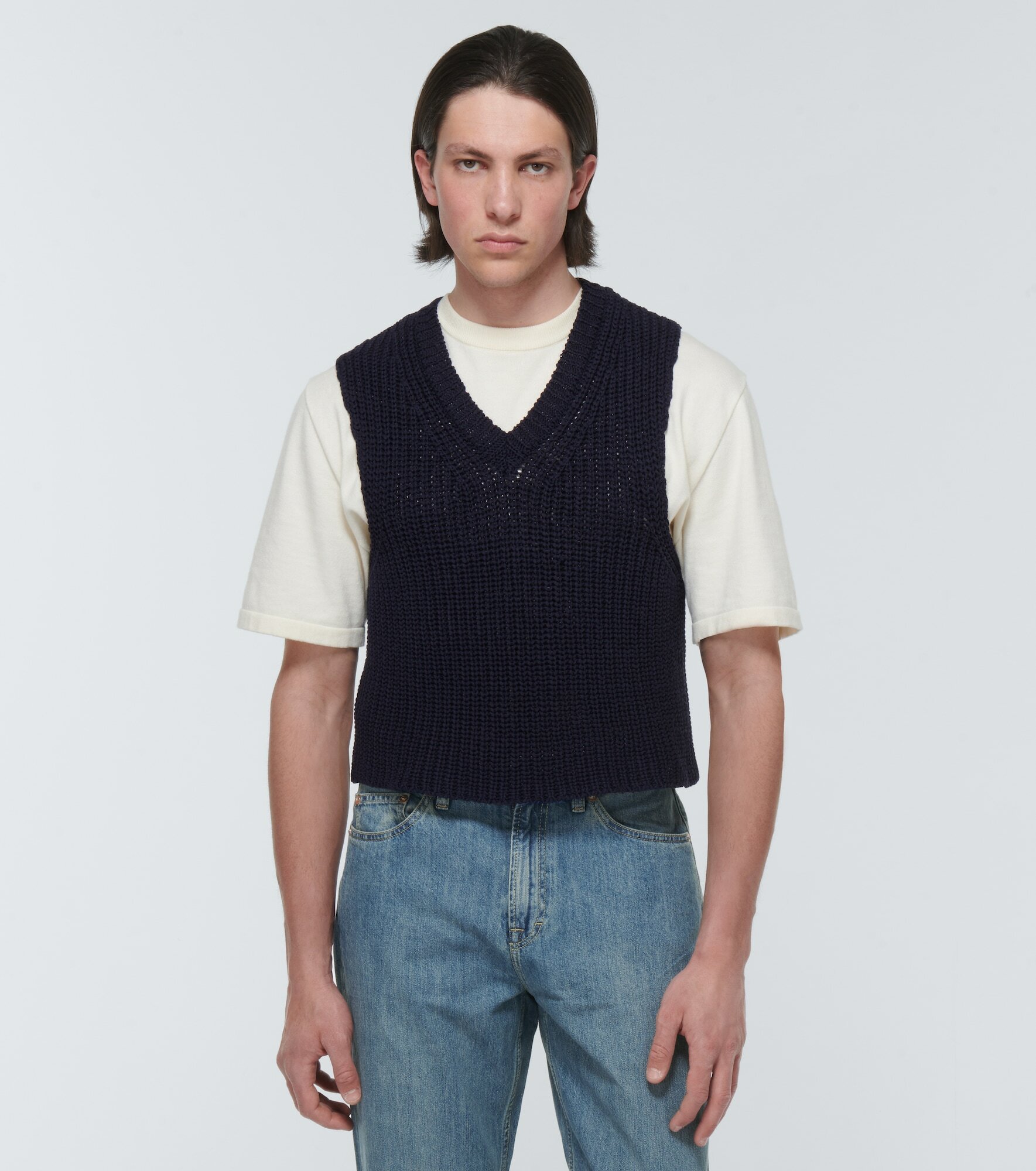 Our Legacy Intact ribbedknit cotton sweater vest Our Legacy Cotton Sweater Vest vintage peach pink sleeveless cotton sweater vest with rolled mockneck and side slits by chava casual, vintage knit. check out our cotton sweater vest selection for the very best in unique or custom, handmade pieces from our women's. alphabet mixed stitch cotton & alpaca sweater vest. browse a variety of cotton sweater vests for women at. Cotton Sweater Vest.