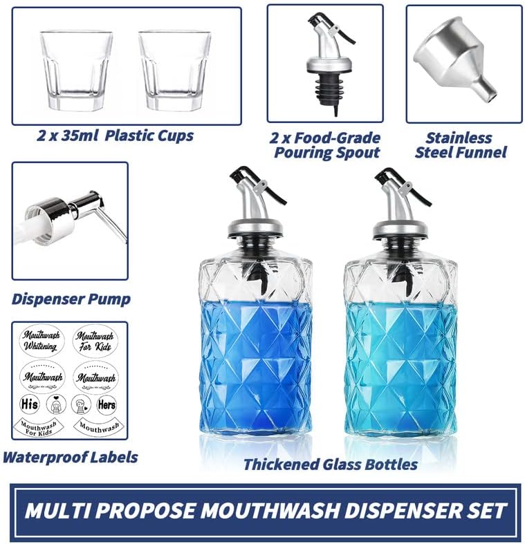 Mouthwash Dispenser for Bathroom, 2 Pack Mouthwash Decanter Set