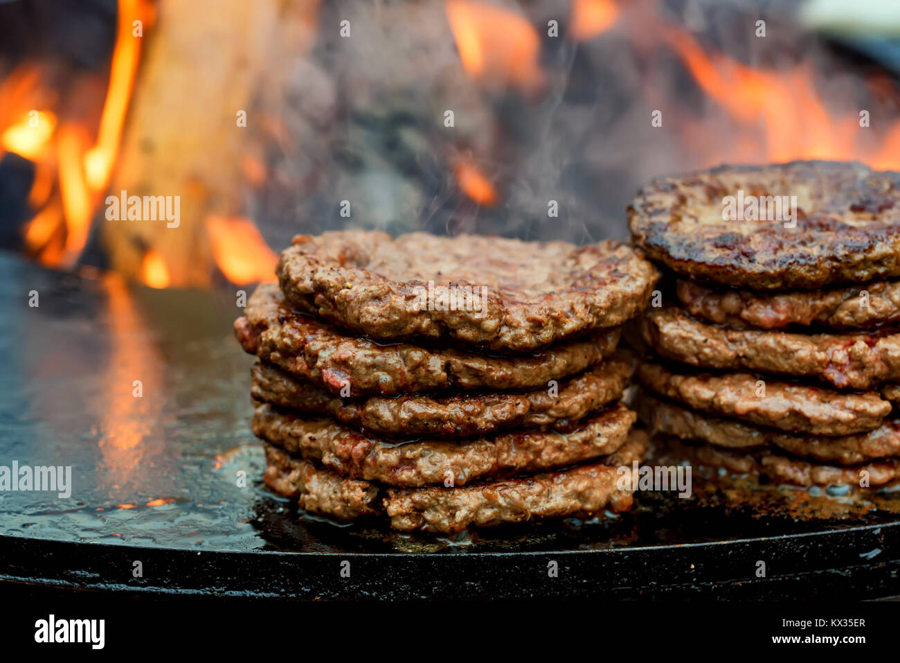 Fresh cooked beef burger patties Stock Photo Alamy