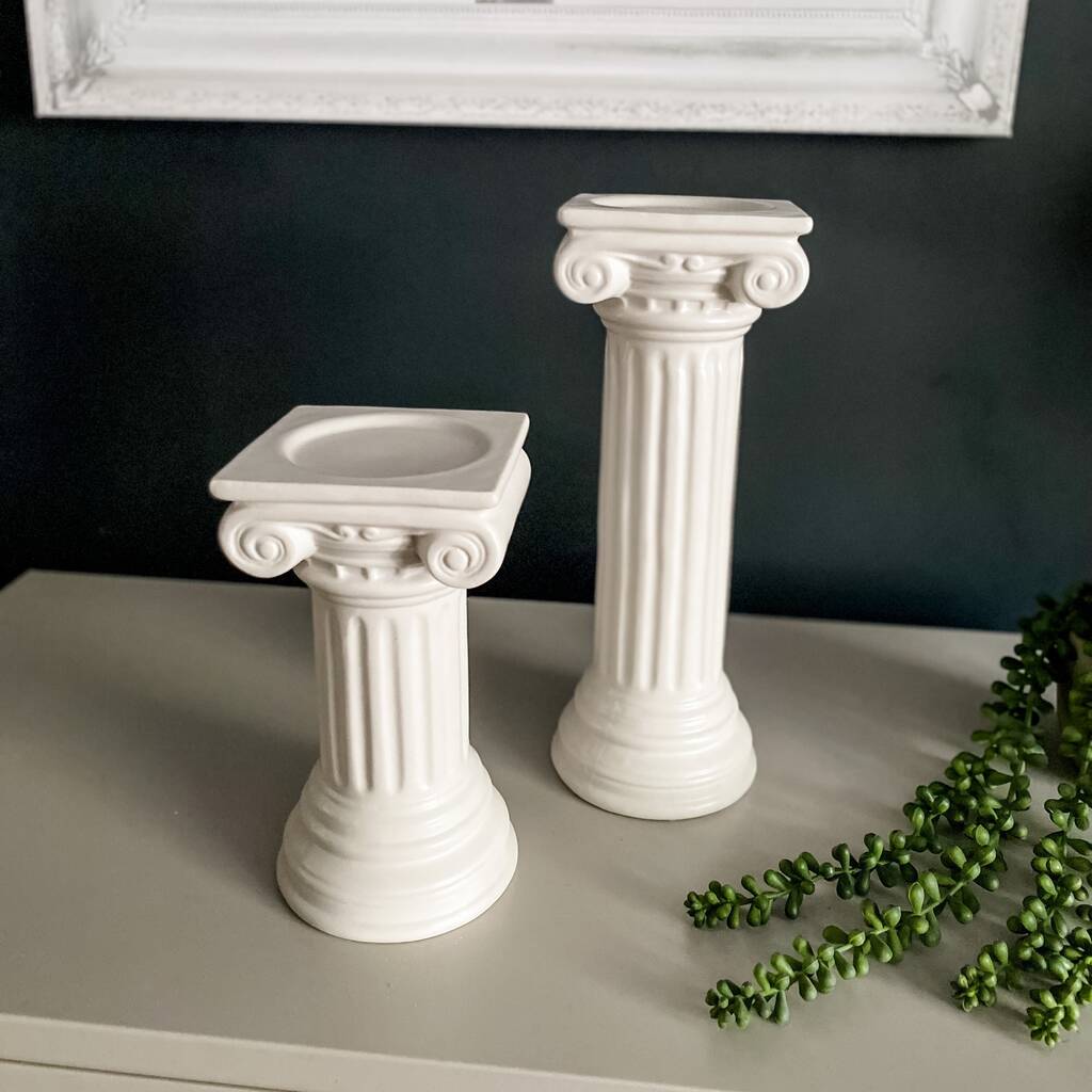 Column Ionic Ceramic Candle Holder White By Punk & Poodle Ceramic Column Candlesticks To begin sculpting, make shapes that are used to create the main column of the candlestick. These hand painted ceramic candlesticks feature traditional deruta designs with a palette of unique colors. Start with a wide, thick, circular slab to. Check out our porcelain column candlesticks selection for the very best in unique or custom, handmade pieces from our shops. Artistica. Ceramic Column Candlesticks.