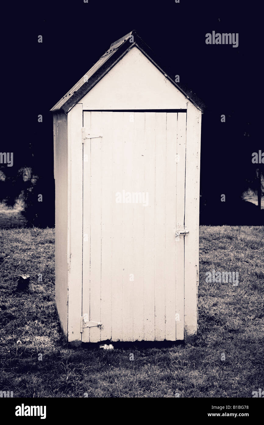 white solitary long drop toilet on camp site Stock Photo Alamy