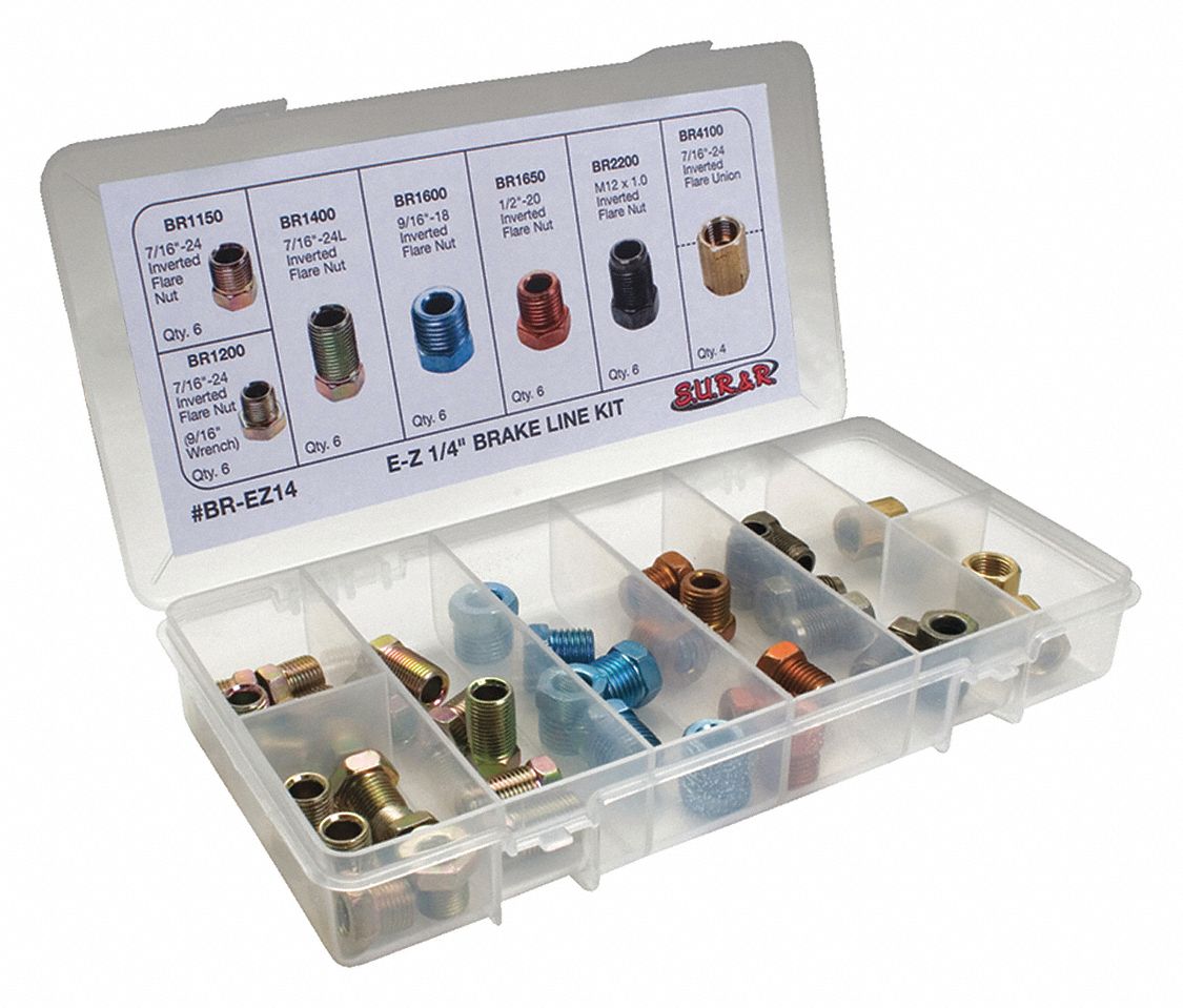 SUR&R, Assortment, 3/16 in OD Tube Size, Brake Line Fitting 52HH02 Sur&R Brake Line Products, including brake line replacement kits, fuel line replacement kits, flaring tools, check valves, fuel level sensor contacts,. brake line replacement kit. featuring ultrabend brake tubing (25'), surbr's 3/16 brake line repair kit makes brake line jobs fast and simple. Metric and standard fittings included. find everything you need to replace brake lines quickly and easily with. Sur&R Brake Line.