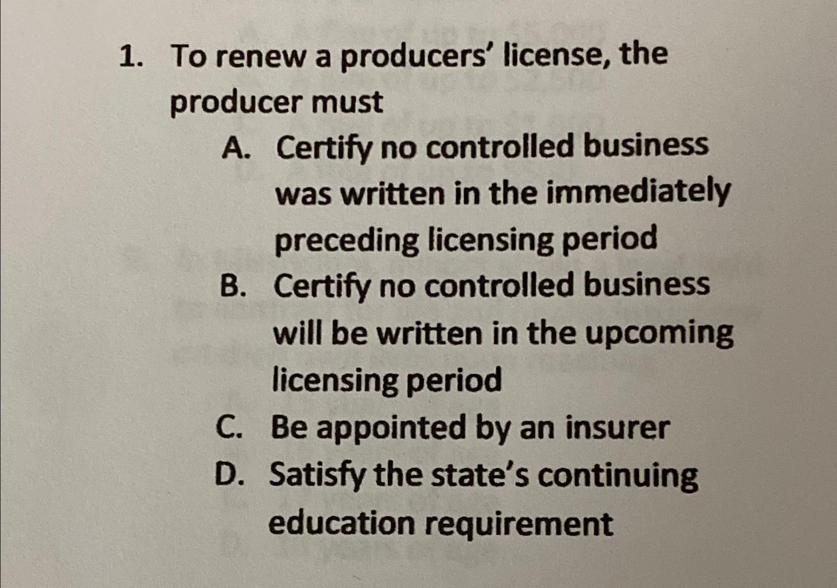 Solved To renew a producers' license, the producer mustA.