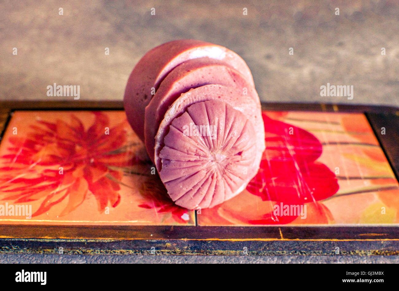 Mortadella Bologna circle slices salami Stock Photo Alamy