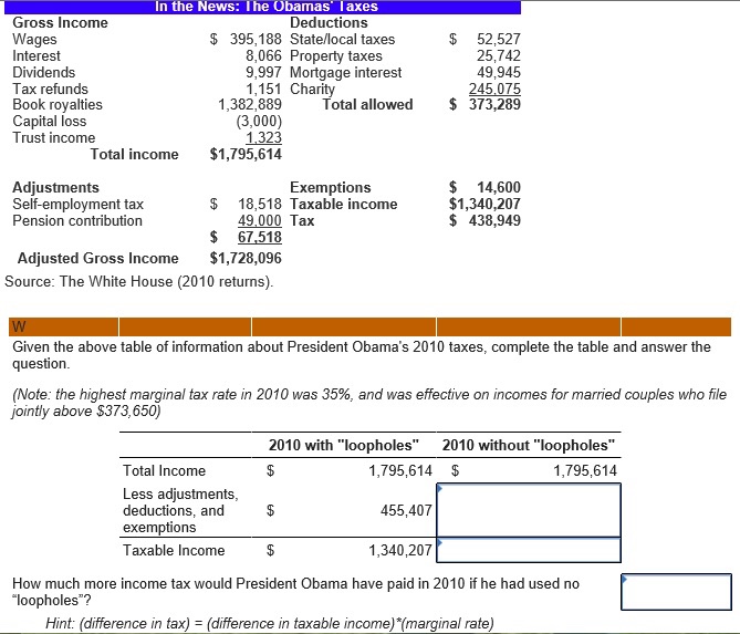 Solved In the News I he Obamas I axes Gross Wages