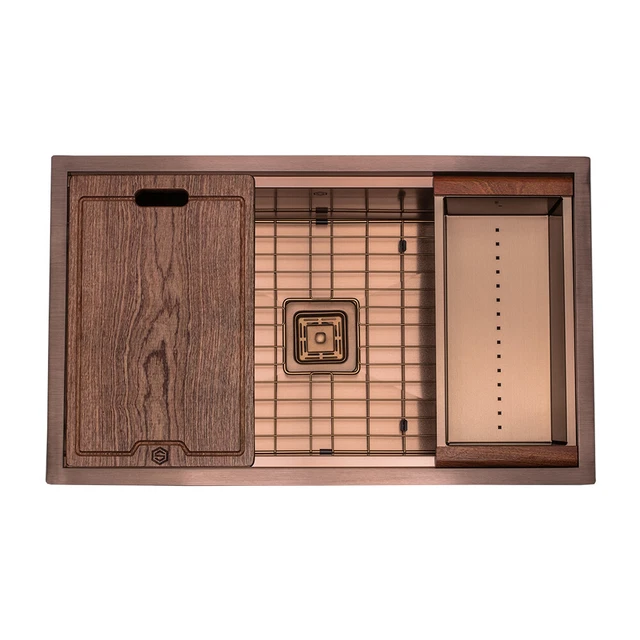 COPPER KITCHEN SINK Square Drain Single Bowl Stainless Workstation Sink