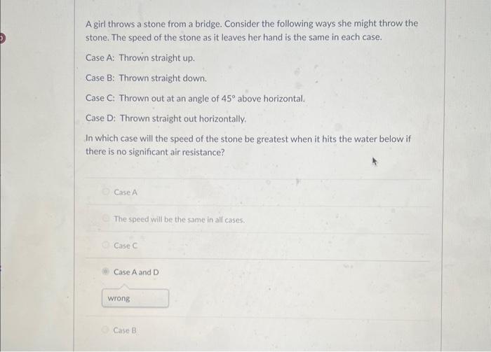 50 POINT PHYSICS QUESTION! PLEASE HELP! A girl, standing on a bridge A Girl Throws A Stone From A Bridge. Consider The Following Ways A girl throws a stone from a bridge. a girl throws a stone from a bridge. Consider the following ways she might throw the stone. Consider the following ways she might throw the stone: A girl throws a stone from a bridge. Consider the following ways she might throw the stone. Consider the following ways she might throw the. A Girl Throws A Stone From A Bridge. Consider The Following Ways.